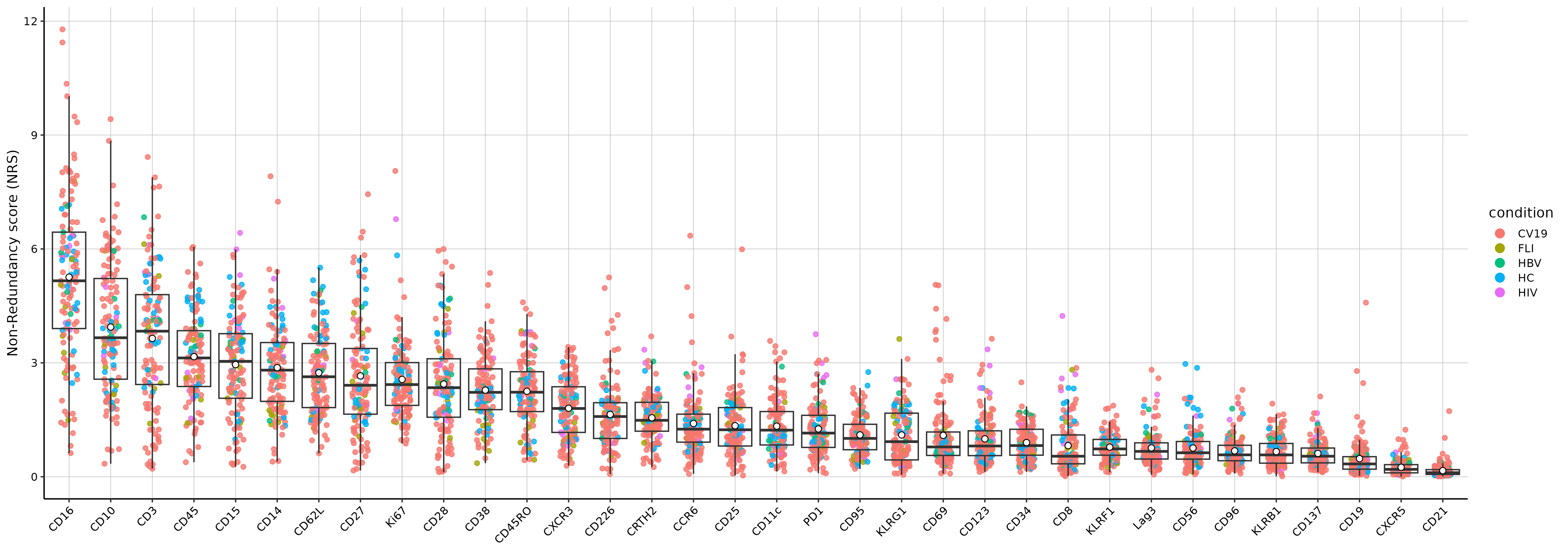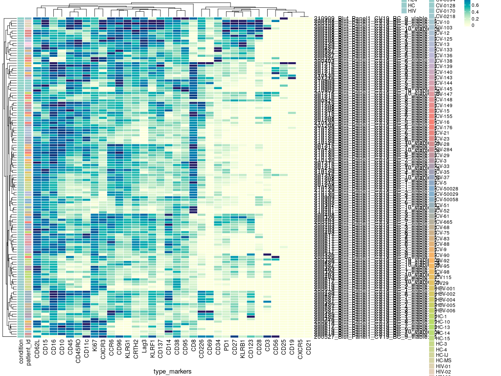 To reveal putative immunopathogenic roles of T cells in severe COVID-19, we performed mass cytometry of whole blood samples from mild and severe COVID-19 patients during the acute and convalescent phase, alongside patients with other acute respiratory infections (Flu-like illness, FLI), as well as patients chronically infected by human immunodeficiency virus (HIV) or hepatitis B (HBV) and controls.