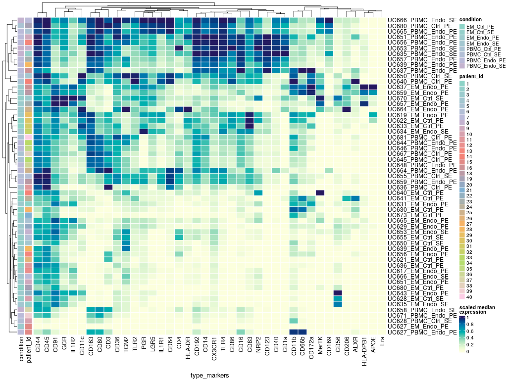 Comprehensive understanding of endometriosis immune pathophysiology in different hormonal milieu and disease severity has been hampered by limited direct characterization of immune populations in endometrium, blood, and lesions. Simultaneous deep phenotyping at single-cell resolution of complex tissues has transformed our understanding of the immune system and its role in many diseases. Herein, we report mass cytometry and high dimensional analyses to study immune cell phenotypes, abundance, activation states, and functions in endometrium and blood of women with and without endometriosis in different cycle phases and disease stages. This dataset contains two types of datasets. One for the broad panel (n=17, all endometrial samples) and one for the focused panel (n=39, n=31 for endometrium and n=26 for PBMC). We have included here a metadata excel file for each panel. In addition, we have also included the two CyTOF panels used in this study, which indicate the channels and markers for each channel. For the brad panel, the fcs. files contain CD45+ manually gated live cells. For the focused panel, cells were manually gated obtaining myeloid cells (and a cluster of putative B cells). The files contain cells that are live CD45+, CD3-, CD66b-, CD56-, and CD56-. Included are focused panel dataset.