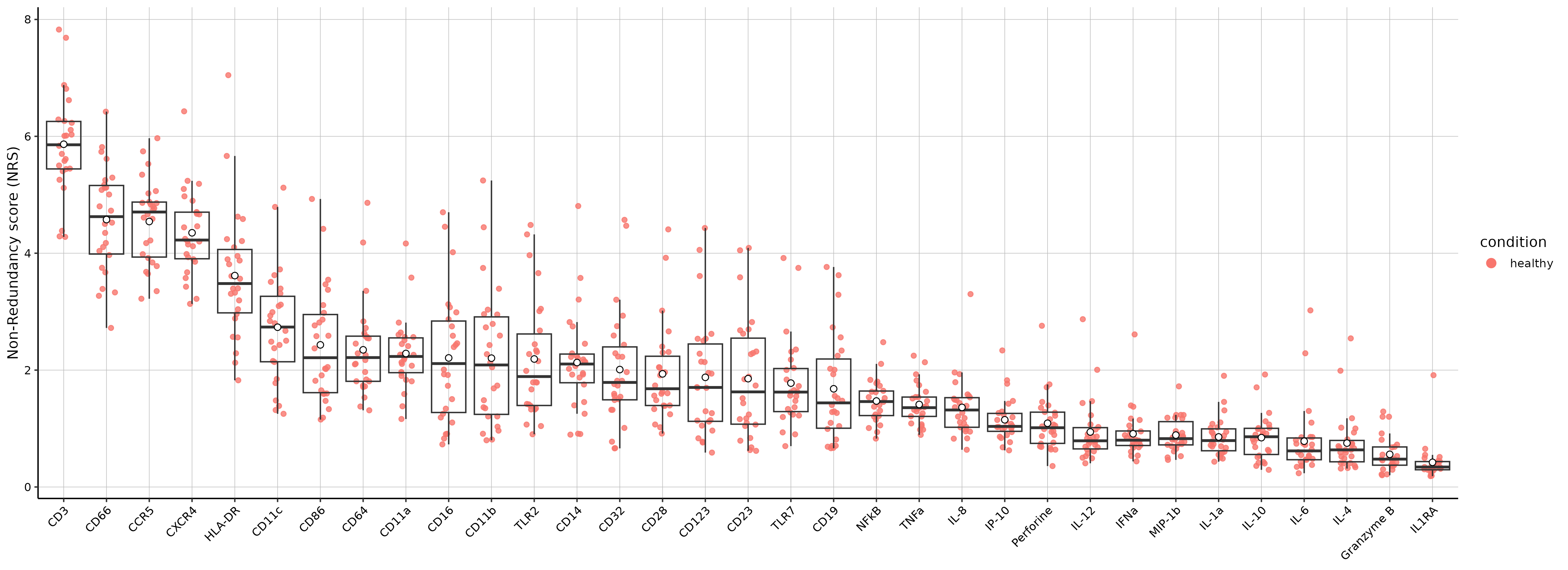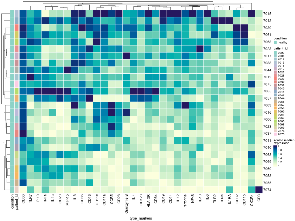 To take advantage of the multiparameter capacities of mass cytometry to simultaneously analyze innate myeloid leukocytes in both humans and macaques with the aim of obtaining a global vision of the different cellular populations and setting the ground for future translational studies across human and NHP models in healthy and pathological situations. Correlation analysis designed to compare the phenotypes of human and macaque cell nodes and based on 16 markers, including 15 shared clustering markers and CD19 for humans or CD20 for macaques, revealed similarities and differences between staining patterns. Whether distinct staining profiles revealed lack of sufficient cross-reactivity of antibodies or are biological meaningful differences between primate species remains to be clarified. Our study certainly contributes to better assess the advantages and limits of the use of non-human primate in preclinical research. This study unique by the number of individuals (26 humans and 5 macaques) and the use of mass cytometry certainly contributes to better assess the advantages and limits of the use of non-human primates in preclinical research. Included are files of human samples.